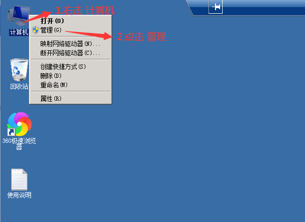 1.右击桌面图标 计算机 - 然后点击 管理(WIN10是右击 此电脑)